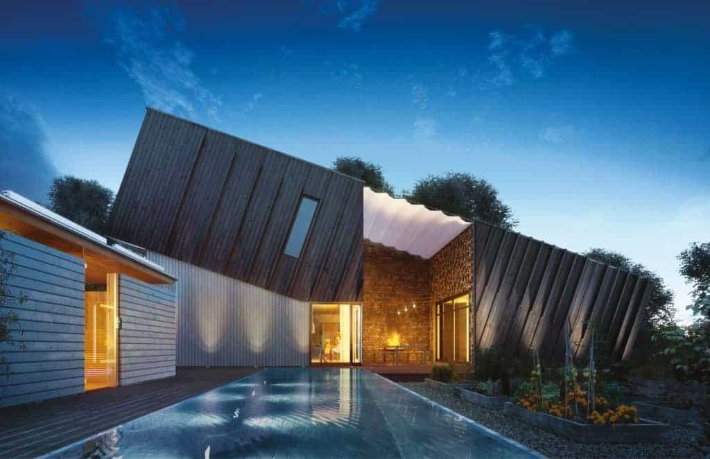 Pilotbygget Multikomfort er lagd av det norske arkitektfirmaet Snøhetta og bruker sol- og geotermisk energi til å produsere tre ganger så mye strøm som det trenger. Den ekstra energien huset produserer, kan faktisk brukes til å holde en elbil i gang året rundt. Huset er mer enn stort nok til en vanlig familie.