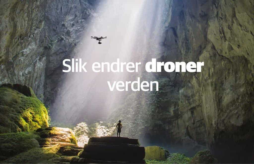 Takket være en nedgang i produksjonskostnader, samt en lynrask teknologisk utvikling, har droner de siste årene fått mange bruksområder, både profesjonelt og rekreasjonsmessig.  I de neste kapitlene kan du lese om hvordan droner kan brukes av både brannmenn, skogvoktere og journalister. I tillegg er de særdeles nyttige i arbeidet med å oppdatere kart. Filmskapere har erstattet tradisjonelt filmutstyr som steadicam med droner, og de kan nå gjøre opptak som tidligere var alt for farlige og dyre å få til med et helikopter.